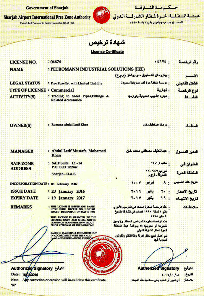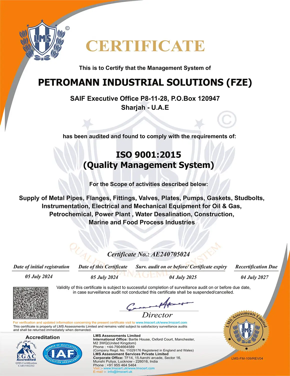 The world reverses originally. Novelty is invariably appreciated. This is a fact that has been embodied by Petromann for last few years. It was established with the sole aim to be a quality solution provider for the oil & gas industry. Petromann the creators of excellence and class of supplying various steel industrial products like Pipes, Tubes, Flanges, Fittings, Valves, Gaskets and Stub Bolts. Our wide range of products has been sourced in compliance with the diverse needs of various industries and have been well responded by our clients based in UAE, the heart of Middle East business.